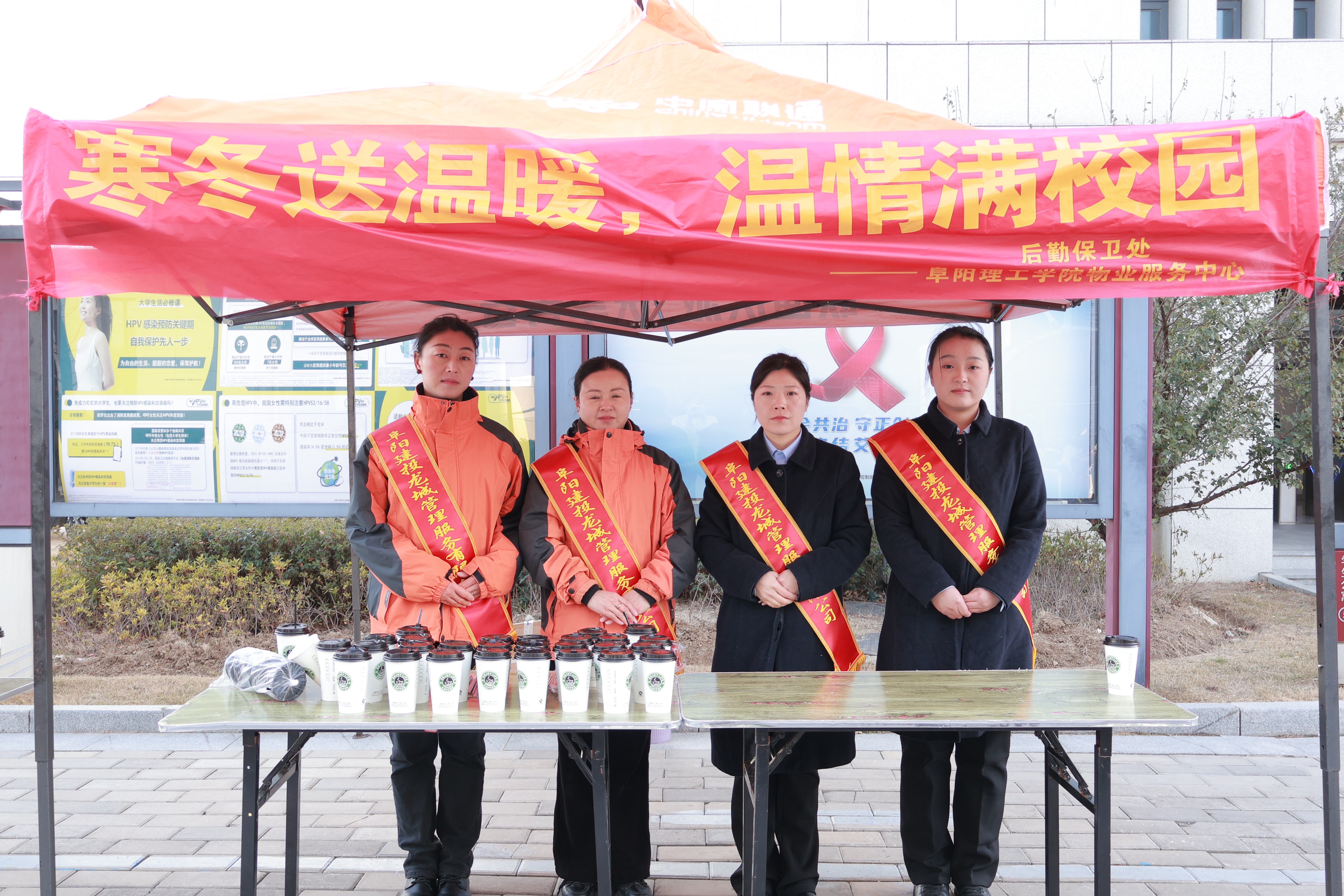 活動(dòng)中,物業(yè)工作人員擔(dān)當(dāng)“暖心使者”,在校園食堂入口師生流量密集區(qū)域,設(shè)立“冬日暖心服務(wù)點(diǎn)”,為師生免費(fèi)提供熱姜茶。一杯杯熱氣騰騰的姜茶,不僅有效驅(qū)散了冬日嚴(yán)寒,更是物業(yè)服務(wù)的暖心之舉,體現(xiàn)了物業(yè)對(duì)廣大師生的細(xì)致關(guān)懷,贏得了師生們的一致好評(píng)。